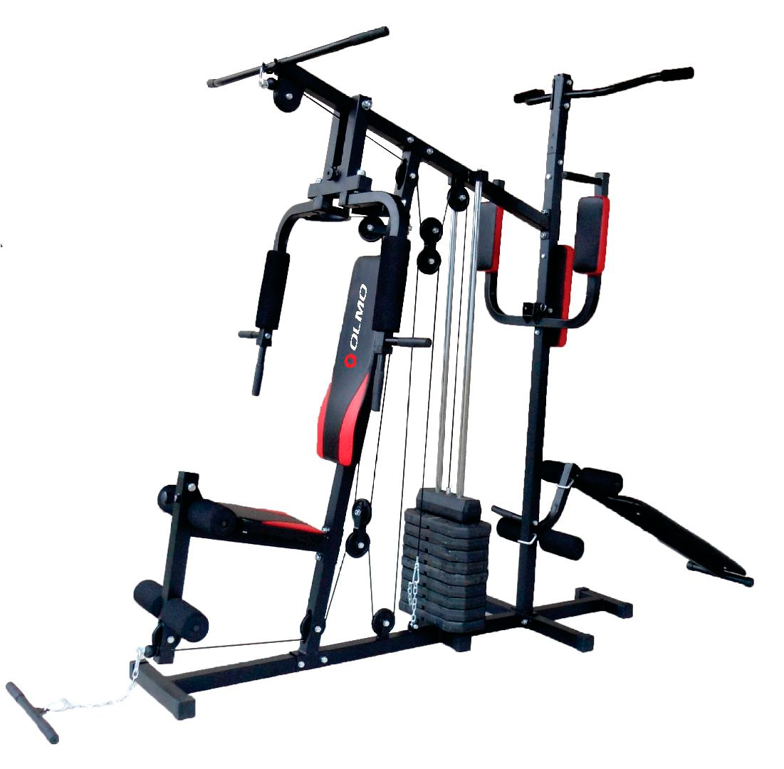 | CARACTERÍSTICAS | • Permite realizar más de 25 ejercicios • Incluye 45 kg de pesas • Banco para abdominales y barra fija para dominadas • Asiento y respaldo muy confortables |